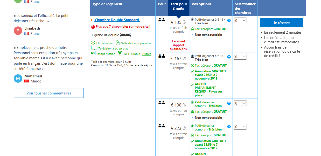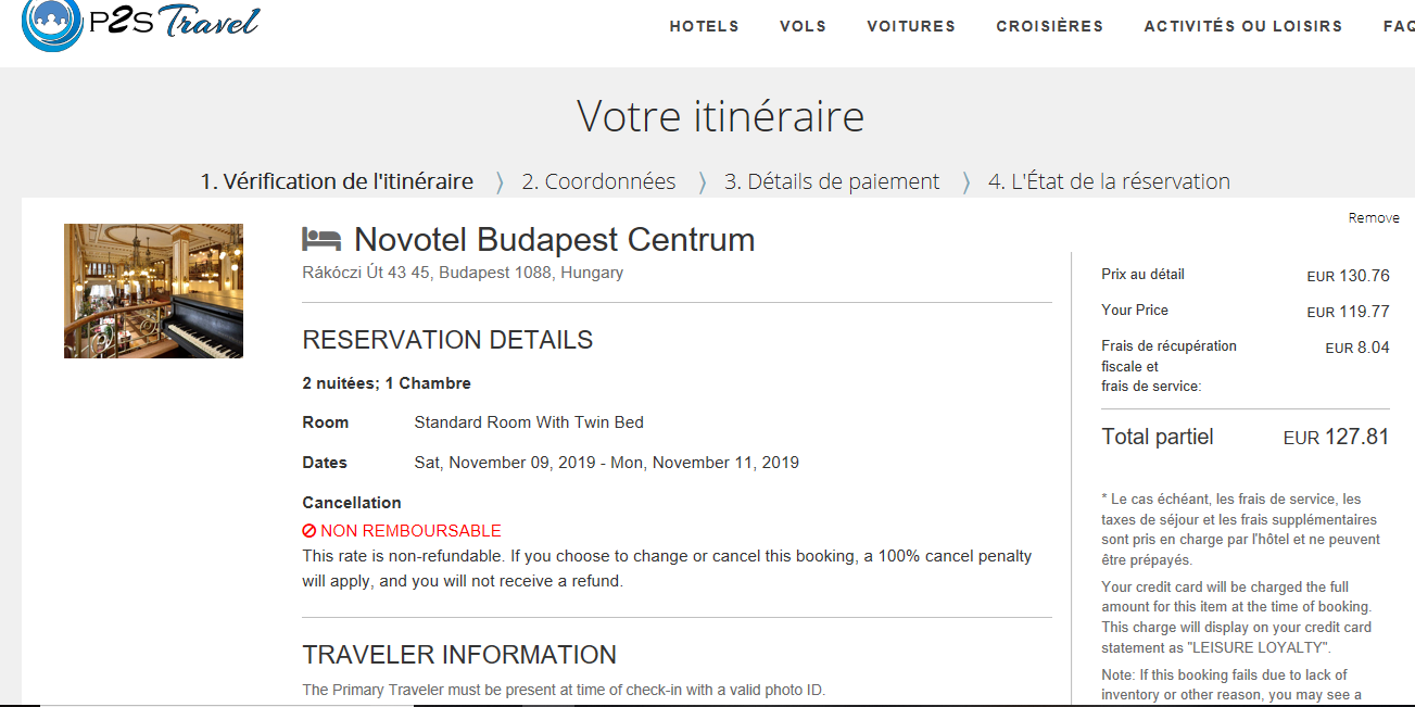 Comparatif pour le Novotel Budapest Centrum 7 euros de différence avec Booking
